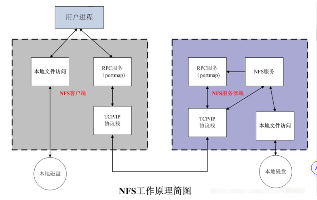 客户端启动RPC(portmap服务),向服务端的RPC(portmap)服务请求服务端的NFS端口