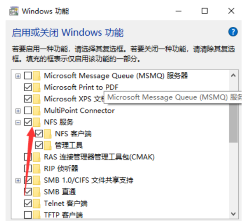注:只有win10的企业版和旗舰版才有NFS功能,家庭版需要第三方软件