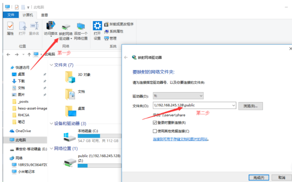 第二步:在此电脑,映射驱动器中添加nfs地址,和要共享的文件夹。